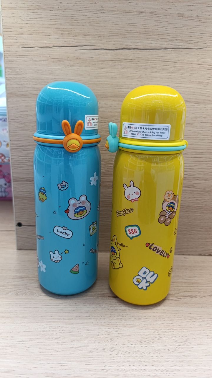 قمقمه فلزی رنگیرنگی مدل Rabit Duck، با طرحهای فانتزی خاص و بدنه استیل ضدزنگ، هم دلبره هم کاربردی! عایق دما، سبک، خوشدست و کاملاً مناسب مدرسه، باشگاه یا میز کار😍